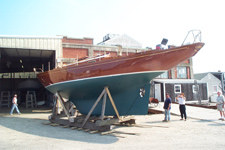 Badly burned in the Seattle Yacht Club fire, Concordia Yawl Coriolis was shipped back to Padanaram for restoration in August 2002. Most serious damage was on deck and a summary of the repair project includes: Replace teak laid deck, toe rails, cockpit seat, coamings, winch blocks, bridge deck, all hatches and port side sheer plank (center section).